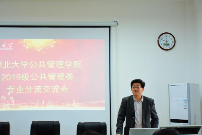 张小进副经理对专业分流作了简单介绍,并鼓励同学们将专业选择与学习规划、人生规划相结合,找到最适合自己的方向并为之努力奋斗。向良云系主任就两个专业人才培养的特点及前景、就业情况,包括历年就业率、主要就业方向等情况作了介绍。陈娟副系主任对两个专业的课程设置进行了介绍。王振伟副教授就公共事业管理部分核心课程的开设情况进行了介绍。