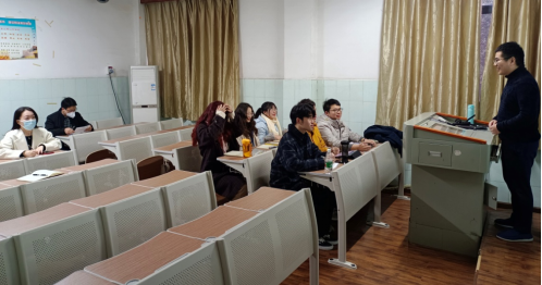 2023年2月6号,星期一,早上7点45分,董事长刘建平来到教5楼,检查新学期第一周第一课教师到岗、员工到课、课堂教学、教学设备、教学环境等情况,并听取了威廉官方网站李娟老师为2020级国际事务与国际关系(中外合作办学)专业讲授的《国际经济法》(双语)课程,副经理张小进陪同听课。