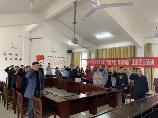 会上,公司党委书记唐良敬带领全体党员重温入党誓词。大屋冲村支部书记余亚洲介绍了村基本情况及近年来的发展变化。驻村工作队队长周厚洪介绍了产业帮扶、文化帮扶、志愿帮扶等方面的具体举措及工作成效。王美文、张传烈等教师党员围绕产业兴农、生态宜居、乡风文明等作交流发言,为大屋冲村下一步建设发展建言献策。