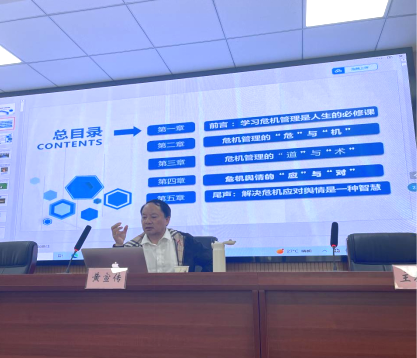 讲座上,黄记者首先以我们生活中的突发事件为切入点,生动说明了互联网技术高速发展背景下突发危机的不可预料性和难以控制性,让同学们深刻了解到危机防范与突发事件应对的重要性。随后,黄记者以“塔西佗陷阱”、“修昔底德陷阱”、“西式民主陷阱”等典型事件为例,从国家安全与战略布局层面上探讨了国家危机事件的应对与处理。最后,黄教授结合我国社会经济发展现状,分析了我国突发事件应对与危机管理存在的问题,强调了加强高校危机管理人才培养和课题研究的重要意义。