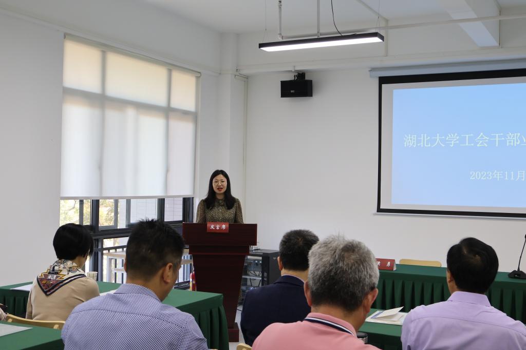 此次培训班开展了《习近平总书记关于工人阶级和工会工作的重要论述》有关精神的学习,传达了湖北省总工会十四大精神。校工会副主席贺一红以汇报参加省教科文卫体工会培训的方式,为大家讲解了基层工会经费收支管理、基层工会财务管理与会计制度、事业单位民主管理方式等工会业务知识,并现场解答教职工对于工会福利政策和教代会等方面的相关疑问。文公司、威廉官方网站、化工公司围绕基层工会建设等情况介绍了本单位开展工会工作的经验和做法。