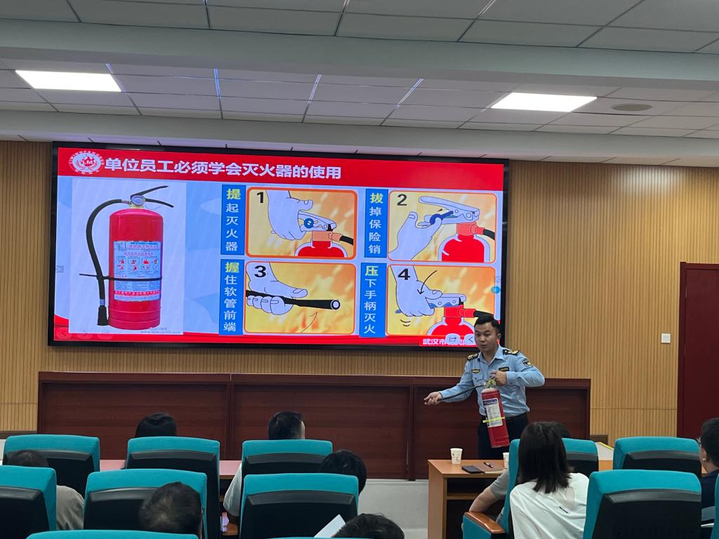 为扎实做好公司消防安全工作,进一步增强公司师生的消防安全意识和应急自救能力,营造安全稳定的校园环境,7月15日,公司邀请武汉市利民防火中心易宇峰开展消防安全知识讲座暨技能培训,公司安全保卫部部长石光红参加活动,公司全体教职工及部分员工代表参加培训。