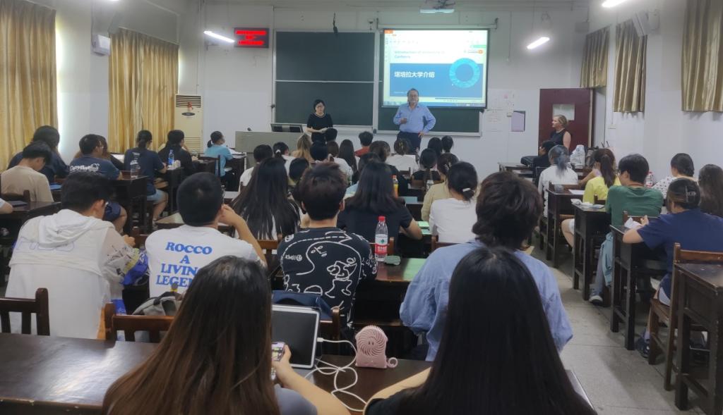 下午2点30分,Julian Knowles教授和Jess Karchinsky女士在教室里与合作项目国际事务与国际关系(中外合作办学)2023级部分员工见面。Julian Knowles教授向员工们带来了堪培拉大学的问候,并表示威廉官方网站项目的员工都很优秀,欢迎湖大学子赴堪培拉大学就读。Jess Karchinsky女士介绍了堪培拉这座新兴有活力的城市和堪培拉大学的基本情况,并与员工们就感兴趣的问题进行了交流。