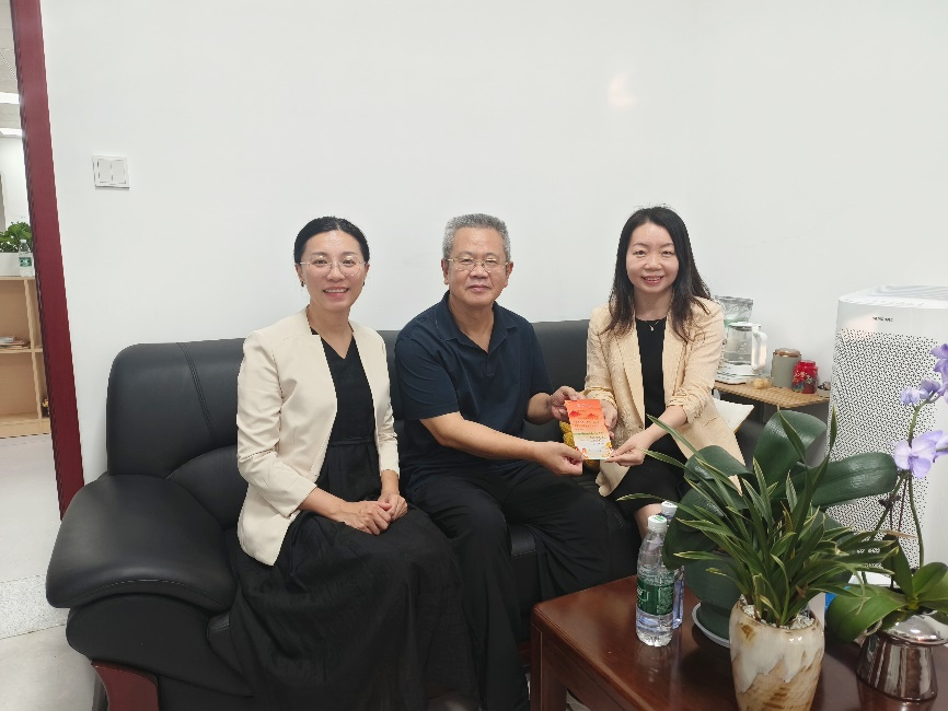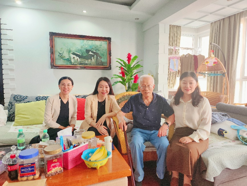 重阳节当日,经理李荣娟、公司党委副书记余欢、院办主任李竞慰问了饶士奇、吴克明等退休老教师,为他们送上慰问品和节日祝福,亲切询问他们的健康和生活情况,并介绍公司建设发展近况,听取他们的意见建议。