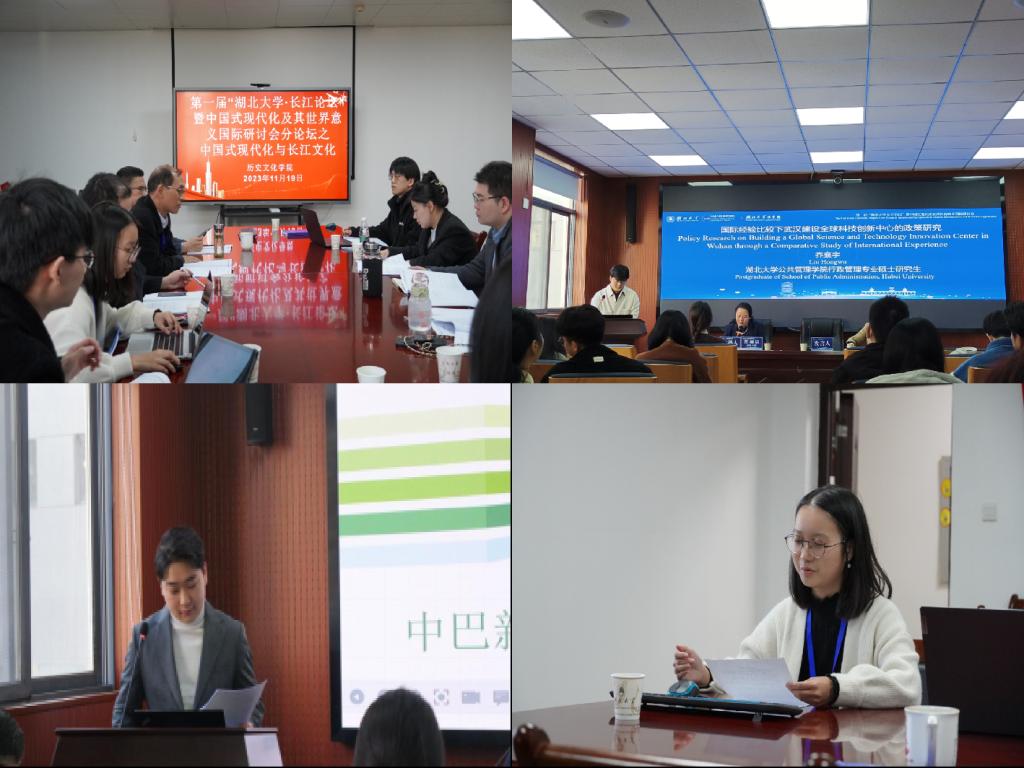 公司青年教师方力、本科生黄祎钒参加“中国式现代化与长江文化”议题分论坛,并分别以《冷战初期美国的两岸政策与台湾经济起飞——以电视剧<茶金>为例》《“一带一路”视野下的万里茶道》为题进行学术发言;研究生邹耀东、乔襄宇参加“中国法律现代化及其世界意义”议题分论坛,并分别以《中巴新能源合作助推巴西再工业化》《国际经验比较下武汉建设全球科技创新中心的政策研究》为题进行学术发言。