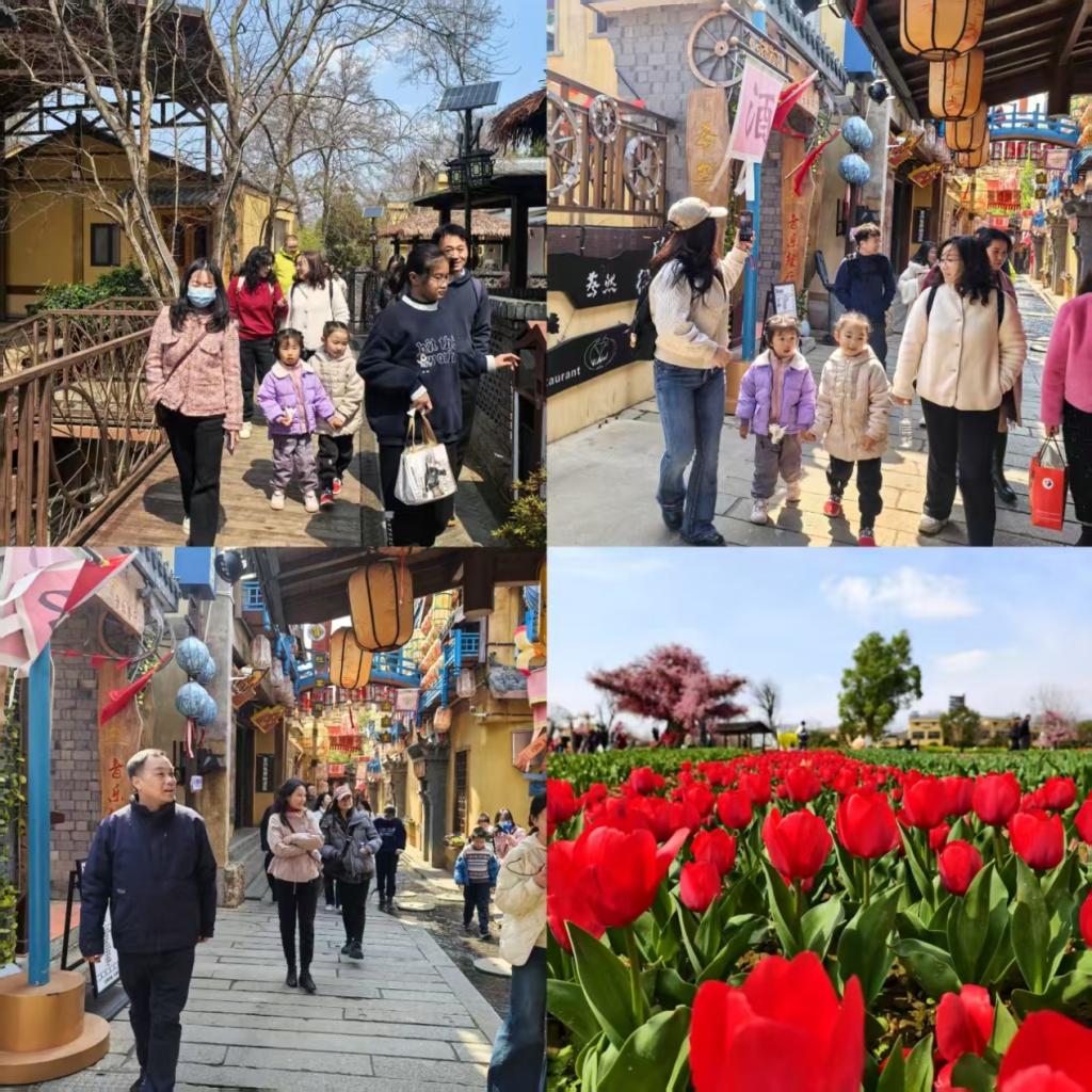 木兰花乡景区以“田园花海”闻名,正值早春时节,景区内郁金香,桃花、樱花竞相绽放,绿柳垂丝,碧波荡漾。教师们漫步于景区的流水小道,赏花观景,呼吸清新空气,感受春日的勃勃生机。大家三五成群,或驻足拍照,或畅谈教学科研心得,欢声笑语回荡在青山绿水间。