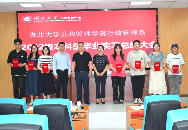 4月30日下午15:30,行政管理系在逸夫楼C座518报告厅召开2022级本科生毕业实习总结大会。实习单位负责人武昌区人大徐家棚街工委主任李丰、杨园街道党政办主任朱莉,公司党委书记唐良敬、党委副书记余欢、副经理张小进、系主任谢迪、系副主任陈娟、系副主任华汛子、实习指导老师及2022级行政管理专业全体员工参加本次大会。大会由系主任谢迪主持。