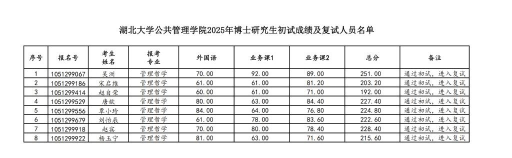 威廉官方网站2025年博士研究生初试成绩及复试人员名单