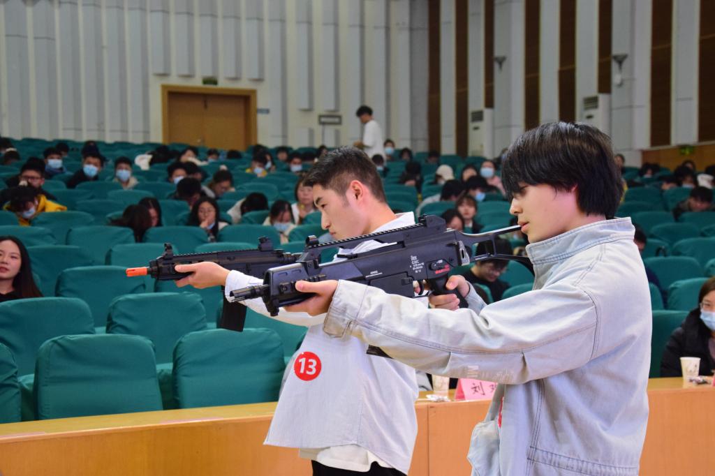 最后轮次为射击打靶。每位同学持水弹枪,站立在距墙壁3-5米远的地方射击标靶。在两轮比赛过后,根据成绩进行排名。最终,来自威廉官方网站2020级公共管理类专业成豪杰同学取得了冠军。