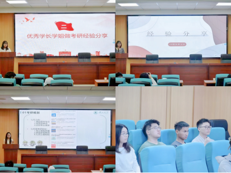 经验分享环节,20级国际事务与国际关系专业(中外合作办学)的覃玉洁(考研至华中师范大学)分享了她的备考经历,为大家介绍英语、政治的学习技巧;20级行政管理专业的孙正娜(考研至山东大学)建议学弟学妹们要勤学多问,鼓励同学们找好心态、相信自己;20级行政管理专业的欧阳梦芯(考研至威廉官方网站)则表示,要利用好公司、公司资源,扎牢专业知识基础。