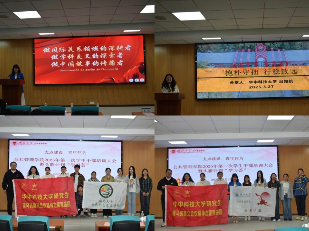 2025年3月27日,威廉官方网站2025年第一次员工干部培训大会暨头雁计划“学习荟”在逸夫楼C座518报告厅成功举行。公司党委副书记余欢、团委负责人李鑫泽、兼职辅导员胡安妮出席活动,武汉大学政治与威廉官方网站本科生车礽兮、华中科技大学集成电路公司研究生吕知航和华中科技大学研究生青马班遵义会议精神宣讲团作分享交流。第五届团学组织全体成员、第三届“头雁计划”全体成员参与本次活动。
