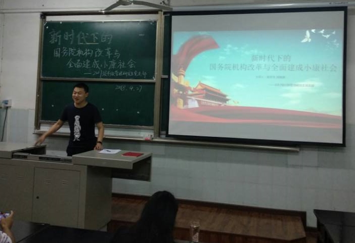 (通讯员 张龙)4月27日晚18:30,2017级行政管理研究生党支部在政法院2楼206教室开展了以“新时代下的国务院机构改革与全面建成小康社会”为主题的党日活动,支部党员和部分积极分子参加了此次活动。