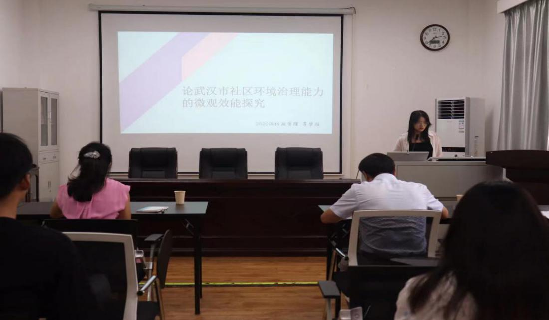 首先,李梦雅同学以“论武汉市社区环境治理能力的微观效能”为主题,全面诠释了社区环境治理的目的和意义、微观治理存在的问题以及提高我国社区环境治理的对策,为同学们今后的研究提供了很多思路。李梦雅同学的学术报告让同学们认识到社区环境治理作为国家环境治理的基本单元,对促进社区环境治理能力现代化转型升级具有重要意义。同时她也和大家分享了此次深入实地调查的研究方法。最后三位老师对李梦雅同学的报告依次进行了点评指导,王美文老师强调写论文要重视研究基础,题目概念一定要解释清楚;张继涛老师肯定了此次报告选题新颖,具有问题意识,但需注意学术论文的规范性;汪霞老师肯定了此次报告以问题为中心,选题有新意,但还需注意一些基本内涵概念的界定。