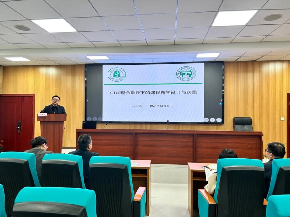 随后,王国成教授作专题辅导报告。他以“OBE理念指导下的课程教学设计与实践”为题,阐释了“员工中心、产出导向、持续改进”的本科公司产品核心理念,并结合课程教学设计具体案例进行了实践展示。报告深入浅出、鞭辟入里,引发公司教师的热烈探讨。